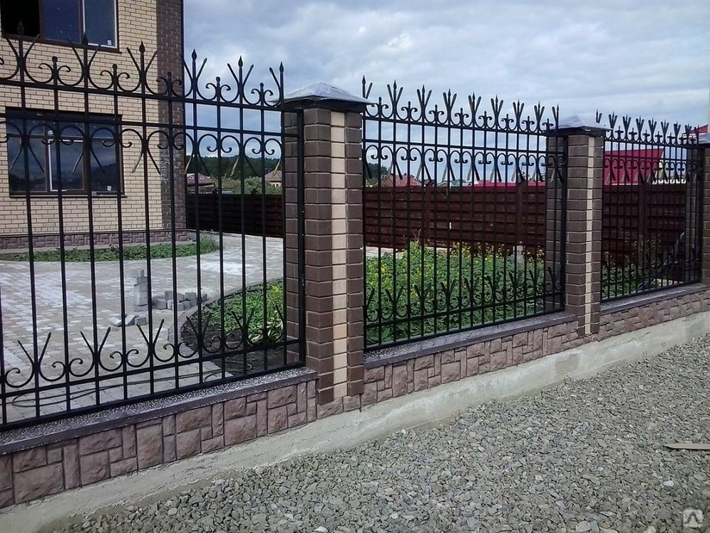 Сварные заборы с кирпичными столбами 70 метров