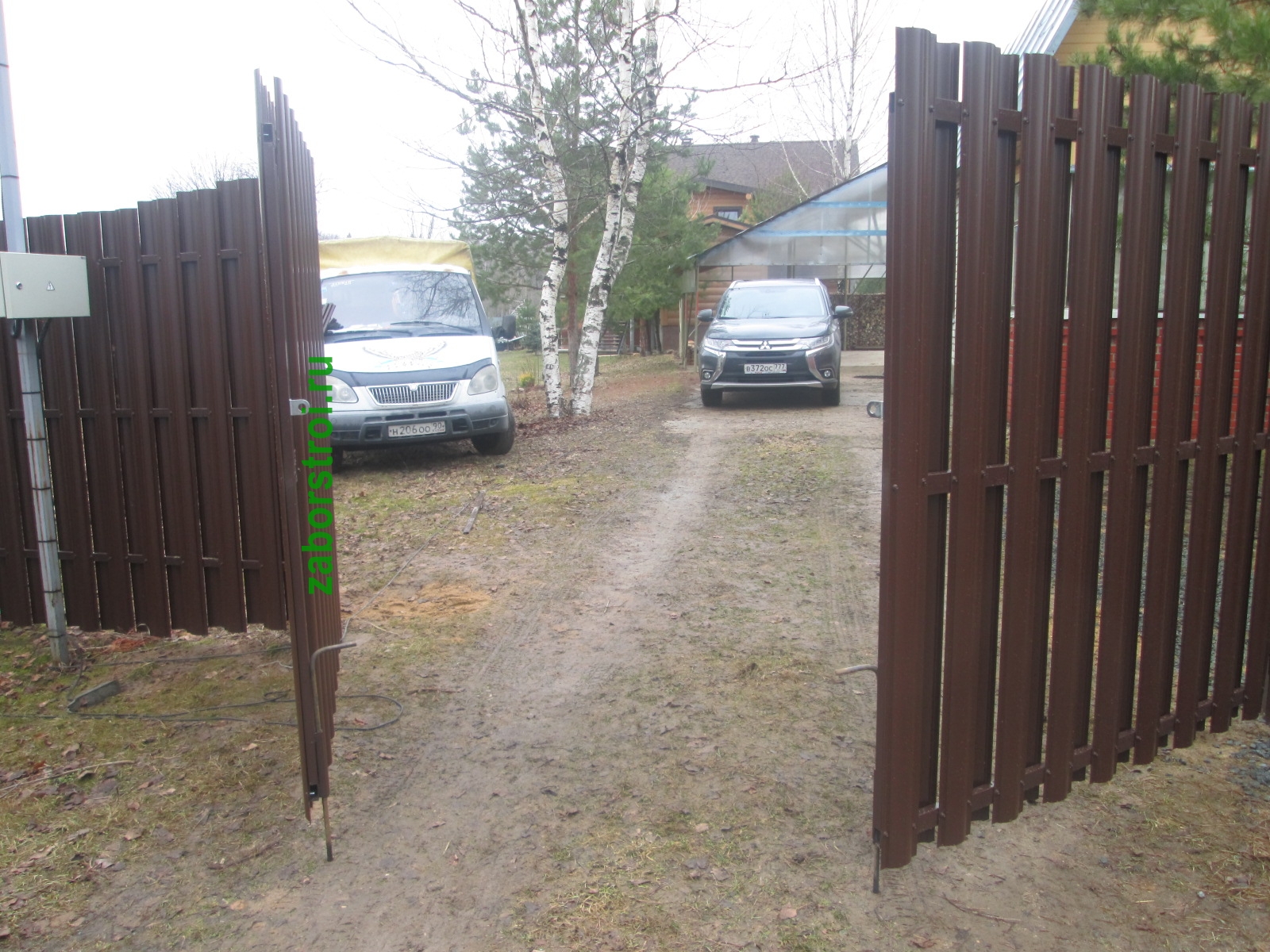 Ворота из евроштакетника распашные пример 8